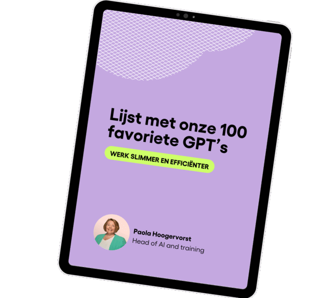 Uren kwijt aan taken die je eigenlijk in minuten wilt afronden? Met de juiste AI-assistenten automatiseer je repetitieve taken en focus je op wat écht telt. Wij bundelden onze 100 favoriete GPT’s in één handig overzicht. Van content creëren tot data analyseren, deze assistenten maken je werk sneller, slimmer en een stuk leuker. Download de lijst en ontdek welke GPT’s bij jouw werk passen.